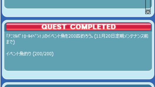 こんにちは。 時間限定釣りクエスト4を達成しました。 やったーーーーーーー!