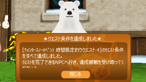 こんにちは。 時間限定釣りクエスト4を達成しました。 やったーーーーーーー!