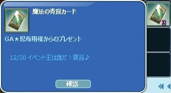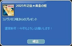2025年明けました~~! (今年もヨロシクー♪)0o。ヽ(。・ω・。)ノ アケオメー♪♪ TVで、ゴチと孤独のグルメを見まくってたw 昨日~届いてた~ 去年の12月のイベ王、2回目の入賞ヾ(・∀・)ノダィ!! こんな数字で1位だった~Lucky♪ ウサギさん凄いな!☆""ハ(´∀`*) パチパチ 26日はメンテ日だったので~~ 皆勤賞も死守した(´∀`*)ウフフ 年末…双子サンマ・逃走中⋯捕まった!w ちゅぴちゃん&きにょこさん゚+(人・∀・*)+。アリガト♪ 参加賞も゚+(人・∀・*)+。アリガト♪ 千架羅さん & コノさん ヾ(〃^∇^)ノわぁい♪ お年賀ありがとぉおおおおお♪ 運営からお年玉が!!! 右クリしてみたら・・ 10万Gのお年玉だったぁああ!ごち❤