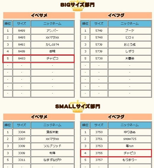 昨日のイベ王で「イベサメBIG]5位と「イベフグSMALL」4位のW入賞頂きました~(*^_^*)