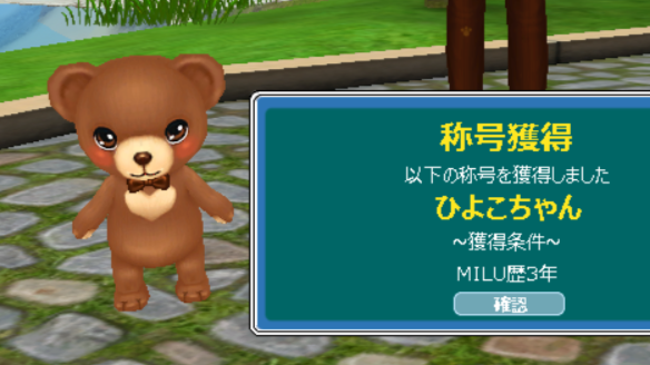 | 称号ゲットおめでとうございます^^ ペットのクマちゃんもかわいいw |
