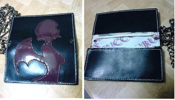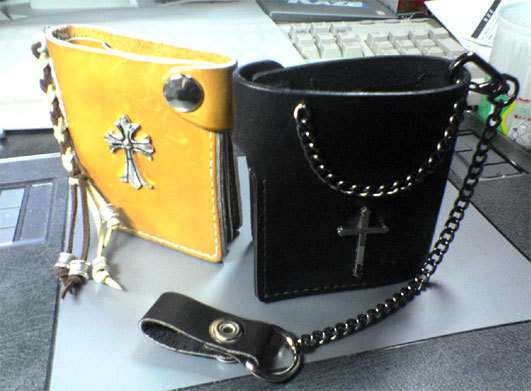 ↑まずは、革細工を始めて最初に作ったペアの財布ですね。