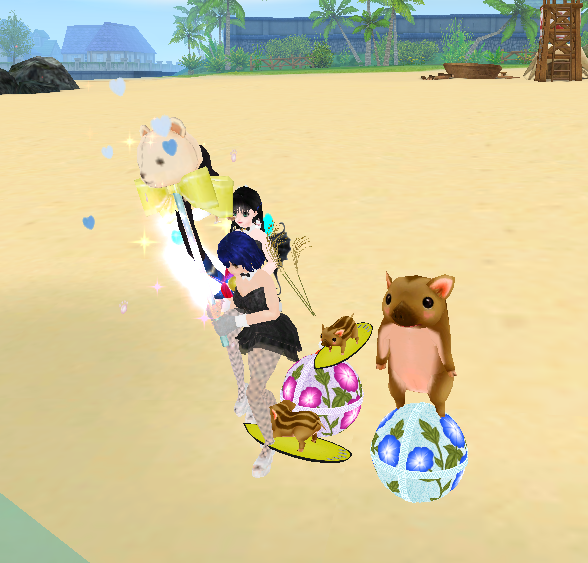 海ー!お花見えてるー!掘りたいー!今日の日替わりポンポンは青紫!