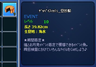 今回のイベ釣りのレア魚「ゲッペイ」
