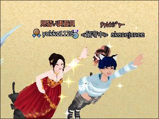 ハロウィンダンス1のエモ缶プレゼントした。ビギだったゆっこさん、とフレのあかねくん。