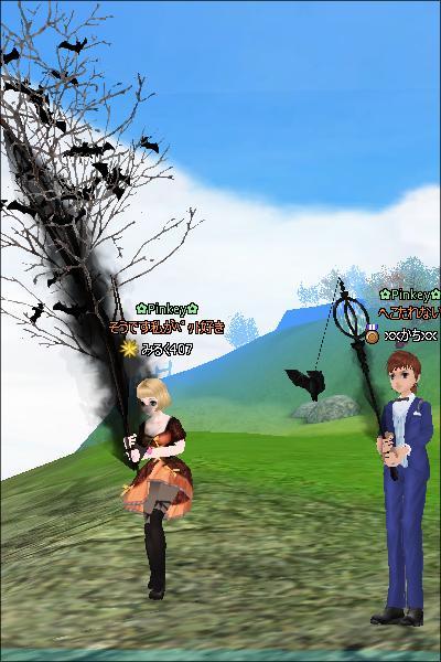 今回のイベの竿が思ったよりしょぼいんです。師匠が持ってる過去のハロウインイベで作った竿があまりにも迫力あってかっこよくて、いいなぁ、ほしいなぁってぼやいていたら、昨日調達してきてくれて、プレゼントしてくれました~♪めっちゃうれしい~~^^ありがとう師匠!!
