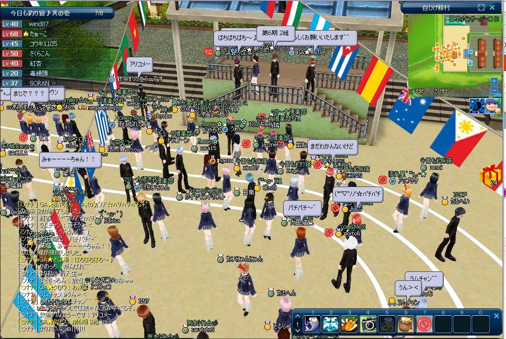 同期入学のみんなに鯖確認し、2鯖でやることを聞いて、制服来てから会場へ。