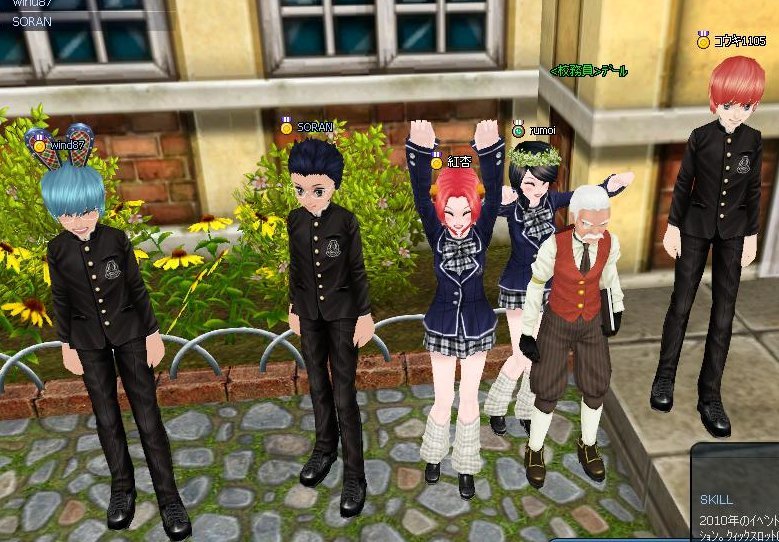 ギルドの同期のうち集まれたメンバーで、校務員の横で記念撮影。