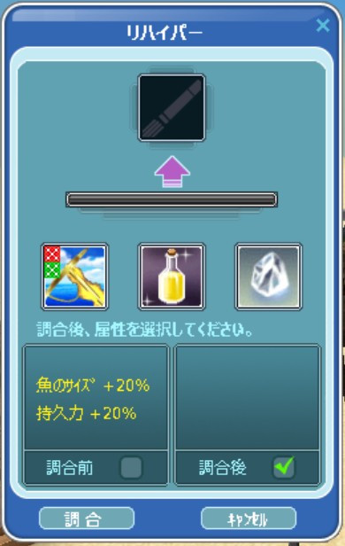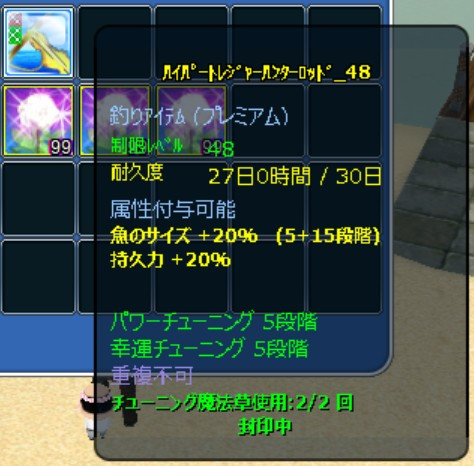 | 結局レベルがあがればずっとその竿を使い続けるわけでもないのでリハイパーはしたことがないですw |