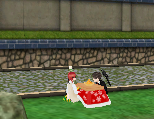 パパがコタツ入ってた!今日の日替わりポンポンは黄緑!