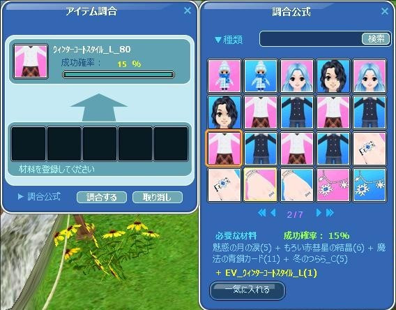 この捨て調合の失敗直後に、目的のEV服調合に切り換えるやり方でチャレンジ~