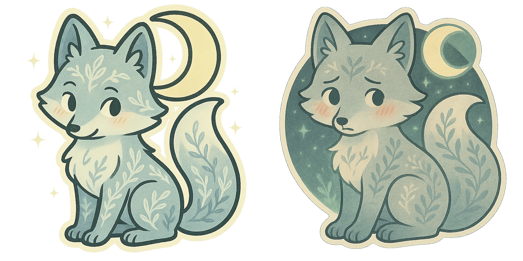 夜は月光をまとった薬草模様の狐。