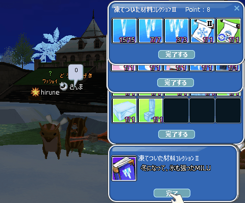 あつあつスープの出が良くなって~ いざ、シャシャと対決だ!(+・`ω・´)キリッ スープ6個で、2個ずつ合計4個できたざんす(。-∀-)ィヒ♪ 今朝、まだ5個スープが残ってるので… 1個だけできた…w お遊び用に、お肉に進呈っと~(´∀`*)ウフフ ホワイトシーズンイベ2週目のコレブは、3種3冊完成できました♪ 家具は、セスナさんに頂きました゚+(人・∀・*)+。アリガト♪ コレブから、遊べそうなEVアイテム作って~w 遊ぶ!!!(*´ω`*) 雪玉に、潰される…お肉w おコタで、まったり❤してからw(・∀・)ノ【★オヤスミナサイ★】 ヤナには、10回程シマエナガ浮きに挑んだが… できたのは、4個のEV浮きだったよぉおおおおお・・ 今朝、傷口を広げた・・σ(・´ω`・)マロw せっせと材料釣りして、深海魚デーリーミッションも終わったわww メンテ明けに(*´ω`)o【マタネ♪】o
