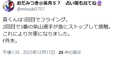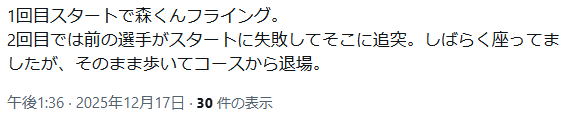 森くんはフライングで勝ち上がり権利を無くした直後に、