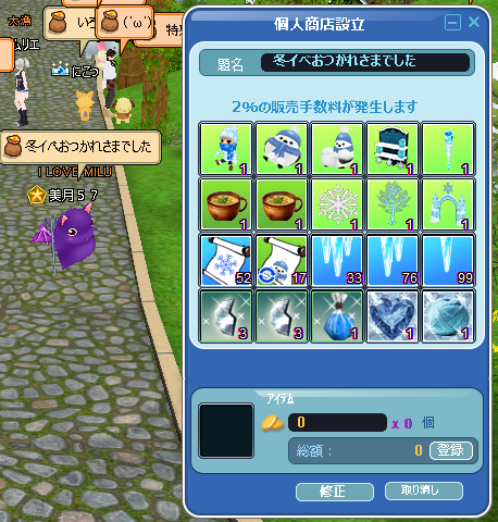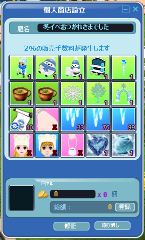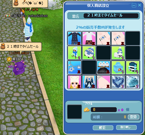 メンテ前の深夜にやった、2週めの2回目の露店です。