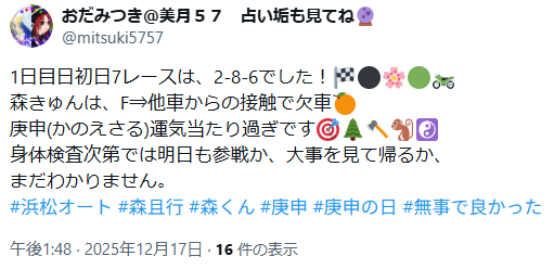 バイクの損傷で欠車になりました(・ω・`)。