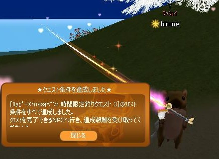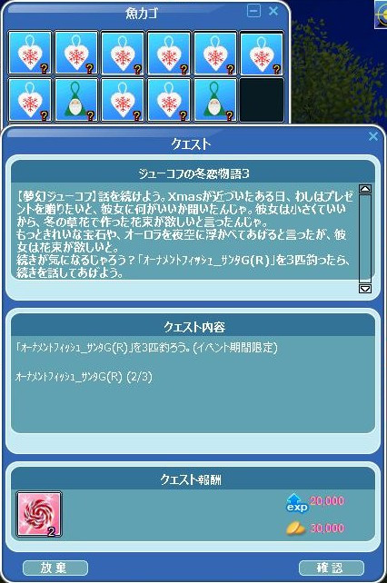 昨日ゲームインして釣り始めて… サンタ2匹直ぐ来た♪ 3匹目が、なかなか来なくて… 98匹目にやっと、サンタ3号…キタ━(゚∀゚)━! 夢幻爺さんに報告よち☆