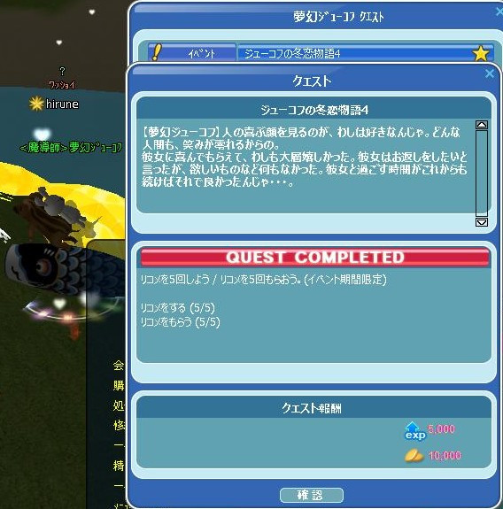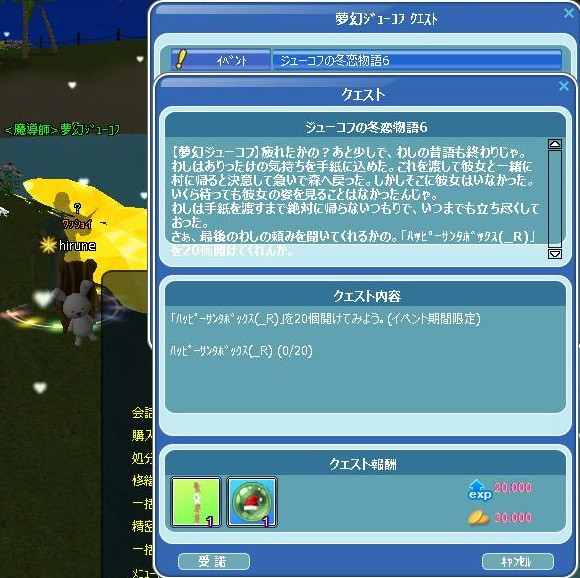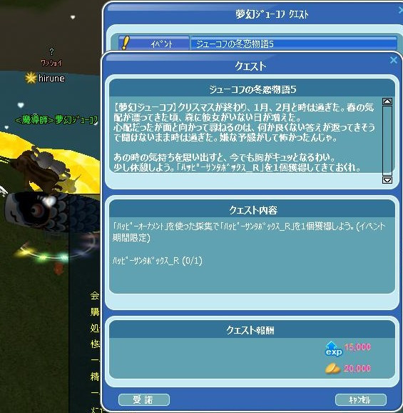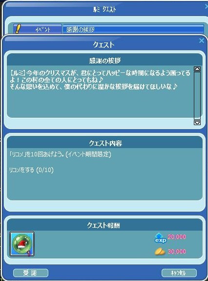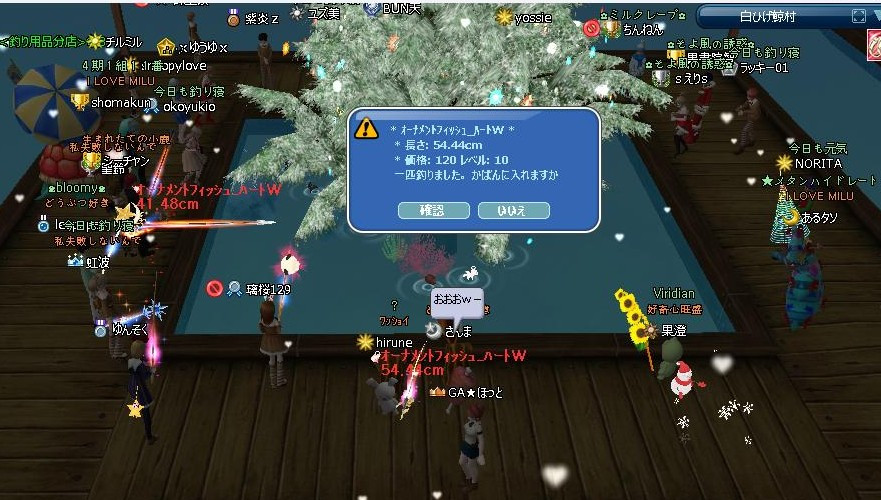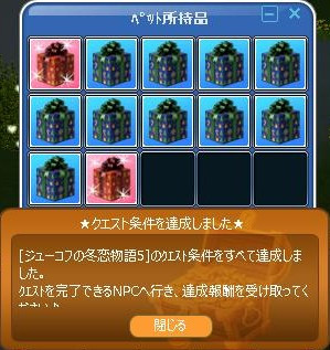 今日から、いつもの…GA★からのミッション♪始まってたYO! 昨日は色んな事あったので、書くこと多いぞw 先ずは、イベクエの続きを… 30掘り終わったら、箱開けじゃなく…リコメする10だった! イベPPあるので~ 完★ 夢幻爺のリコメクエ完了報告に… Σ(( ;゜ω゜)ナニッ!!! 一番初めに出てた赤箱出せですとぉおお! 4箱目に出てε-(´∀`*)ホッ ルミでなかった箱開け20・・爺が隠し持ってた!!! 今度こそ、夢幻爺クエ完★ 夢幻爺に報告よち☆ ハウスのオブジェだったです(`・ω・´)ゞ 昨夜20時から、夜鯖の亀三郎イケスで… MerryXmas♪ゾロ目釣りな運営イベも開催されて~ お肉と一緒に参加できた(*´ω`*) スペシャルタイムには、ペット餌のオマケご褒美が頂けました~ごち❤ 大賑わいで楽しかったです♪(◎`・ω・σ[*Thank☆You!!*] 長くなったので、今日は・・ここまで☆ 続くw