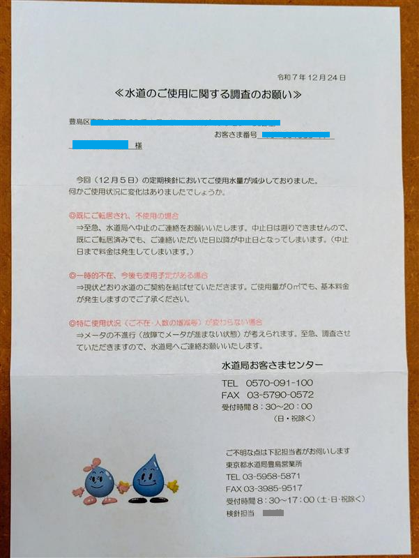 水道局から封書が届きまして、何かと思って開封