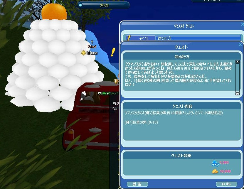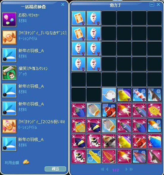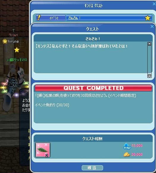 もう、2026年になってたww 浜に、お供え馬餅があった!!! イベクエは、モンデブと案内板から始まります(`・ω・´)ゞ 鳥居の奥に、ウマノスケNPCおる☆ ウマノスケでイベ釣り用の餌を買ったら、30釣りなさい☆ 30釣り終わった報告は、モンデブだった…謎… イベ釣り10で案内板に報告に行ったら、池で釣るがよち!w 次は、50釣りなさいって言われたので~明日に続く… 精密で緑本が出て、ヾ(〃^∇^)ノわぁい♪ 駄菓子菓子…中身は1つも出なかった! 残念━━(⊃Д`;)━━━!!!! 明日は大晦日(○・`д・)ノ ダー!! 抜け抜けでゲームインしてると思われますw 皆さん、今年も゚アリ(´・ω・)(´_ _)ガト♪ 来年も、(*m_ _)m{{宜しくお願いします (*゚▽゚)*゚▽゚)ノ<よいお年を。O○