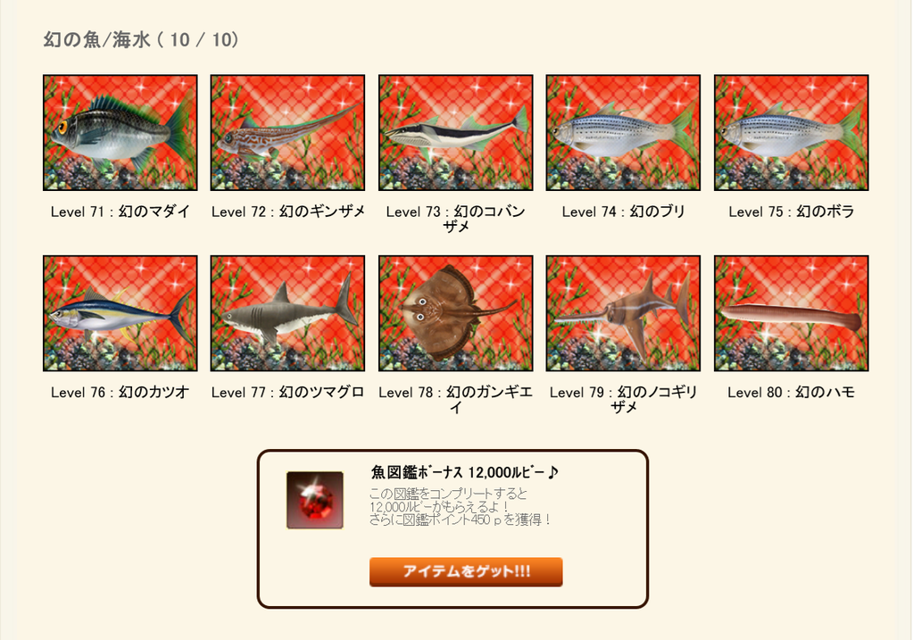 幻の海水71-80と深海魚70-79でした^^ 貴重なルビーこのまま保管しときます(^^♪