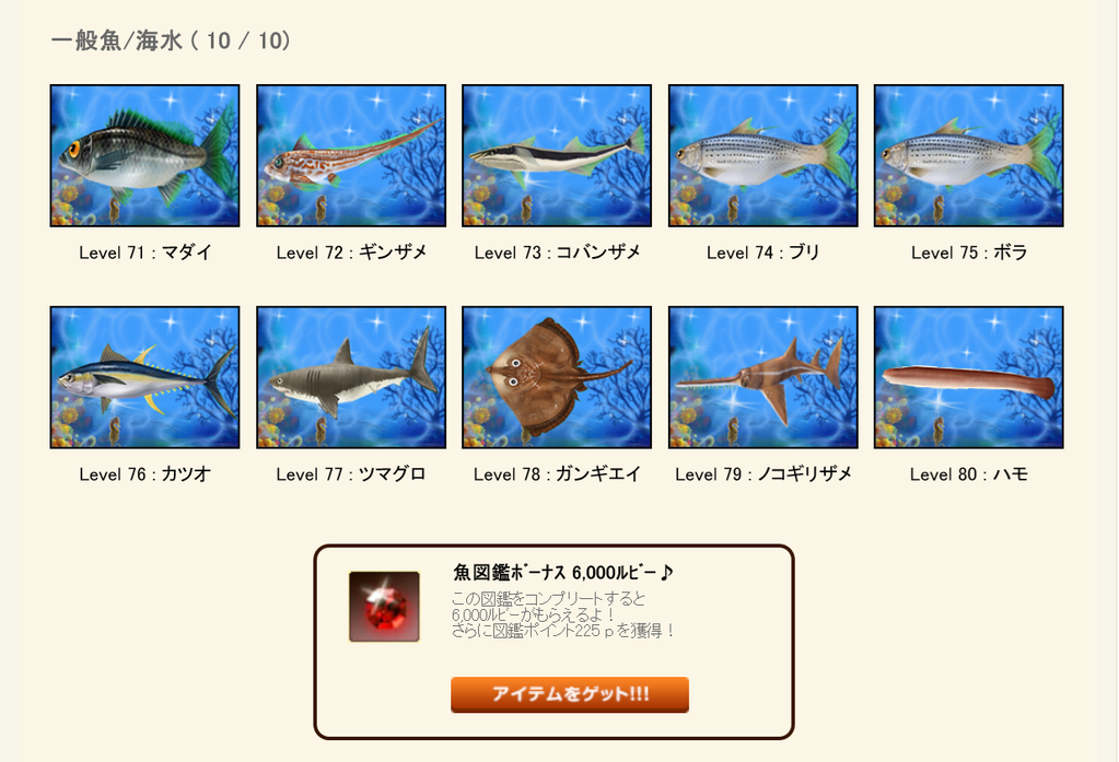 魚図鑑が3個も完成していた(*^▽^*)
