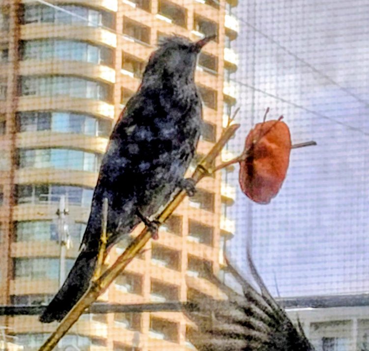 さっき 窓の外でガサガサ音がしたんで、網戸越しに見たら
