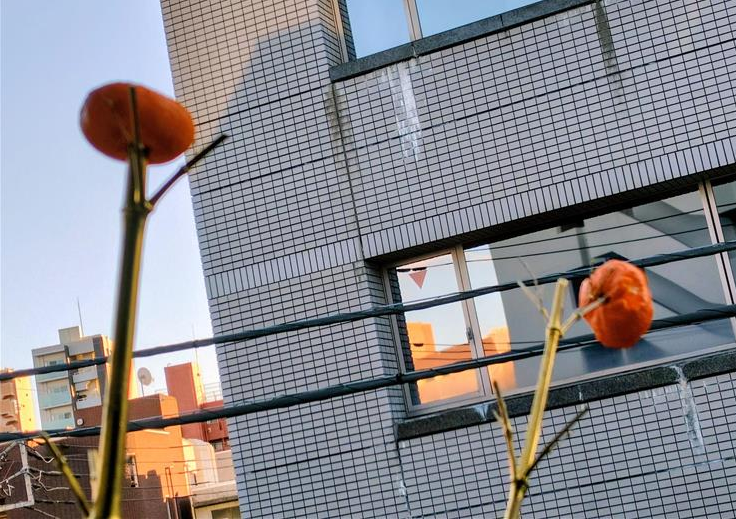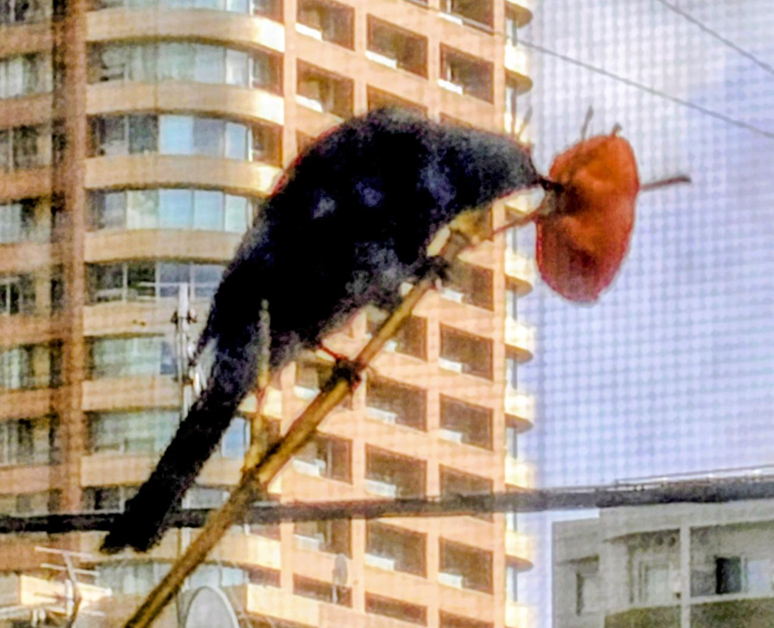 ベランダに木に刺したミカンを放置。食べられた形跡がないなぁって残念がってたら