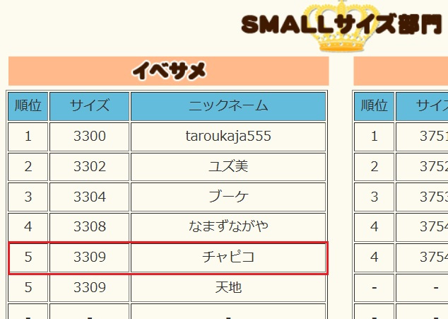 「イベサメSMALL」ギリギリ5位頂きました~