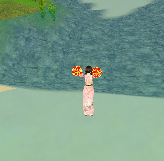 小さい女の子のところ!今日の日替わりポンポンは赤黄!