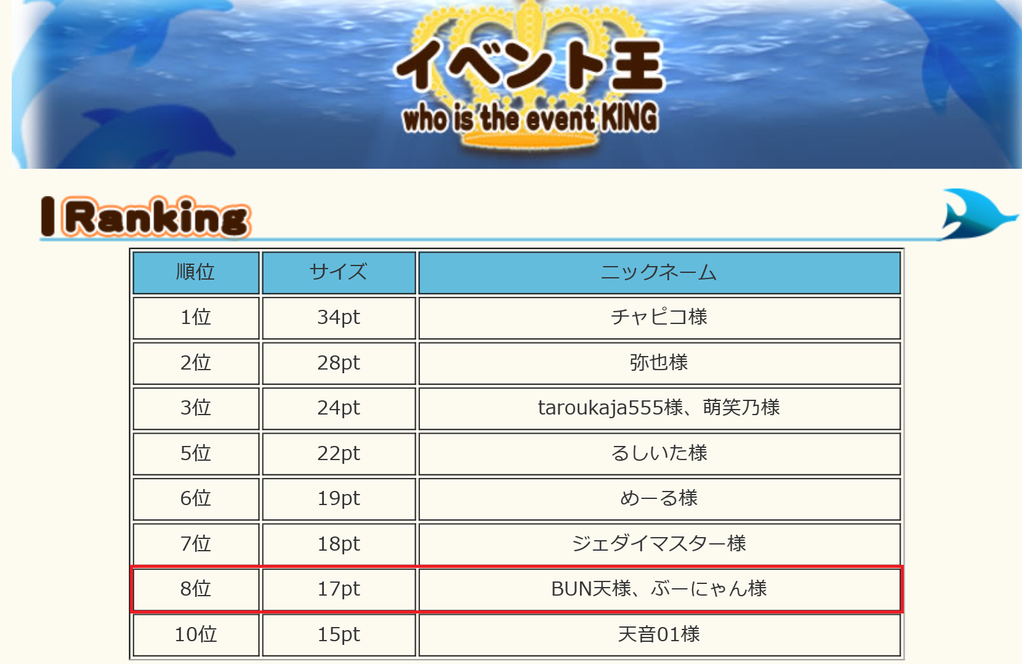 イベ王入賞(★´∀`)ノおめでとうございます