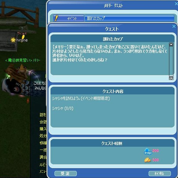 噴水が・・・変わってた! 無防備だが…でか過ぎて盗むのは難しそうだ… イベクエは、メモリー&案内板から始まります(`・ω・´)ゞ メモリー>シャシャ>ヤナ>池の畔のNPC 走り回るYO! 30釣ったら、50釣りなさい☆(明日に続くw WANTED 昨夜も今日も「使いませんか?」と賜ったW竿 なんて幸せ者なんでしょう! 楽しい体験できました❤+(人・∀・*)+。アリガト♪ 宇宙人なEVヅラが出た☆ やっと、お肉に渡せる!w お肉お初な宇宙人☆(b`・Д・)bおめで㌧♪