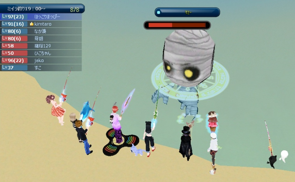 久しぶりに、ミイラ協力釣りに参加(画像)。 黒タコ協力釣りは、Ch1、土曜日20時頃、行うことが多いです。参加をお願いします。