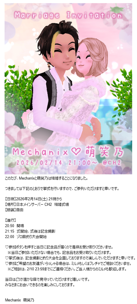 ポストボックス内の「結婚招待状」に届いていると思いますので