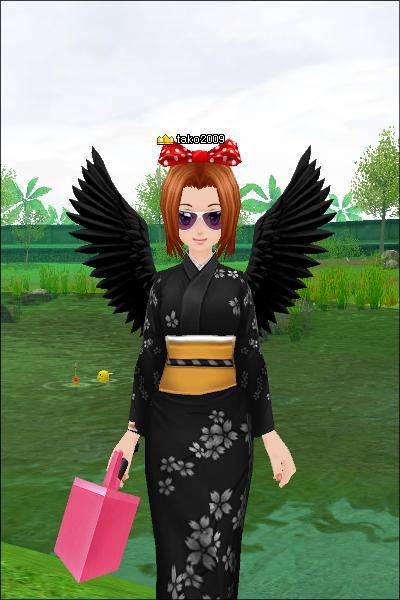 あら 黒い羽根とお着物 takoさん似合ってる(*´∇`*)