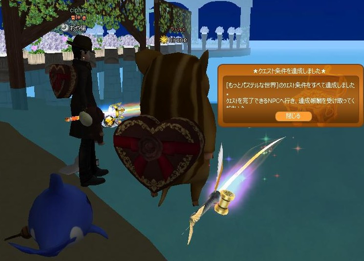 冬になると… 羽毛の掛け布団&ふわふわなムートンのシーツを使ってます もうだいぶ暖かくなって、仕舞う時期も早いかも 昨日…案内板のクエ残して、イベクエ完了(☝ ՞ਊ ՞)☝ウェーイ 池の畔のパフに報告よち☆ 今日から時限クエも始まったので、イベ釣り三昧っすw 大当たり☆ヾ(〃^∇^)ノわぁい♪ 告白アロー❤ キューピットウリかな(*´ω`*)ありがと❤ 可愛いエモ色々あったね~♪ お魚釣り上がると、可愛い❤シャボンが大きくなるの☆楽しい♪
