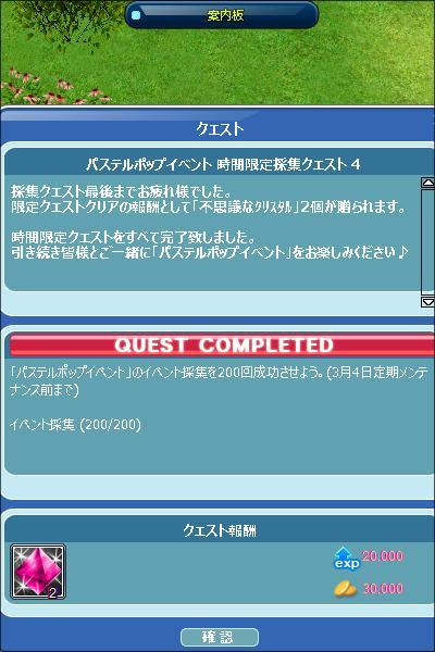 いきなり時限クエ4完了の表示(●^o^●)おわたーw 家具コレブの中身3種ゲット