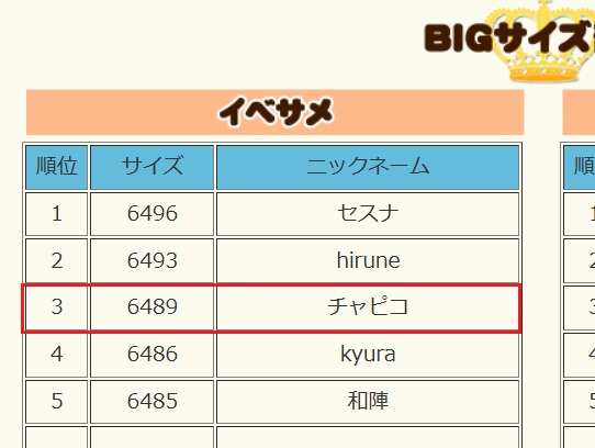 昨日のイベ王で「イベサメBIG」3位頂きました~(*^-^*)