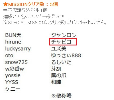 MISSIONクリア数5個の17名に仲間入りしました~^^