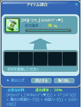 お肉には、フルフルキャンディ❤をと…3回挑戦するも… 玉砕して、飴もフォークも尽きて諦めてたら… 真夜中の㋒集会にて、ゲスちゃんに頂いて+(人・∀・*)+。アリガト♪ 再チャレンジ(+・`ω・´)キリッ 一発(○・`д・)ノ ダー!! いあ・・併せて4回目ですけどねww できた♪ まだ挑戦できるな… なんと、お肉の分もできた~ウキウキW.D.❤ レア材も頂いてますからね~お肉の分もできて好かった(*´ω`*)♪ 1個だけできたw 2個目できるかは、掘り次第っとw 時限クエ3が終わって、4始めました㋒∠( ̄∧ ̄) ビシッ