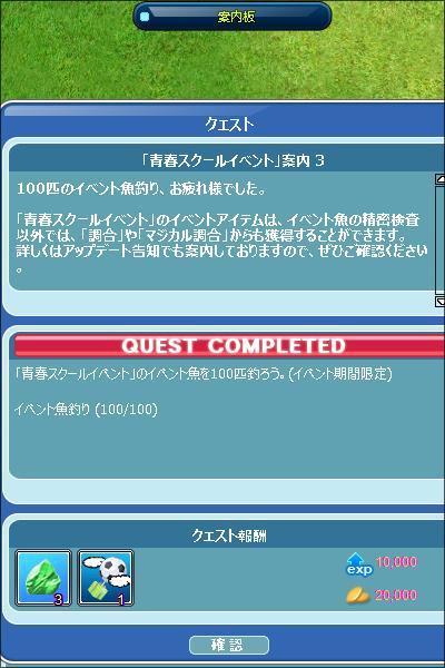 青春スクールイベント開始しましたね。とりあえず案内クエ3まで完了4は明日には完了させれるかな?