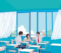 | 青空が背景の教室はいいですね |