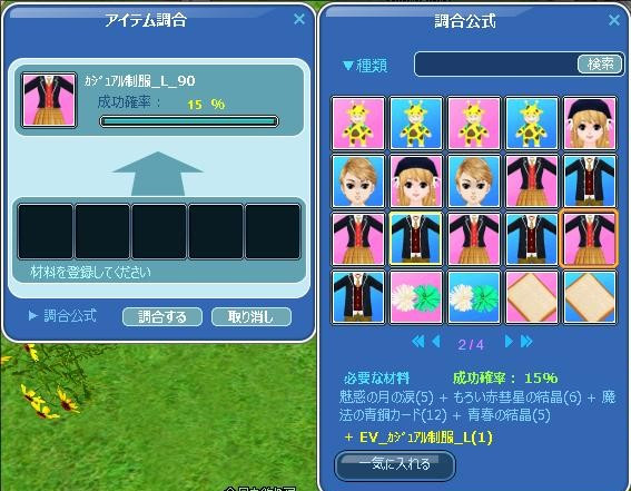 1鯖で「カジュアル制服」調合をダメ元で1回やってみたら・・・ん?無音(笑)・・・