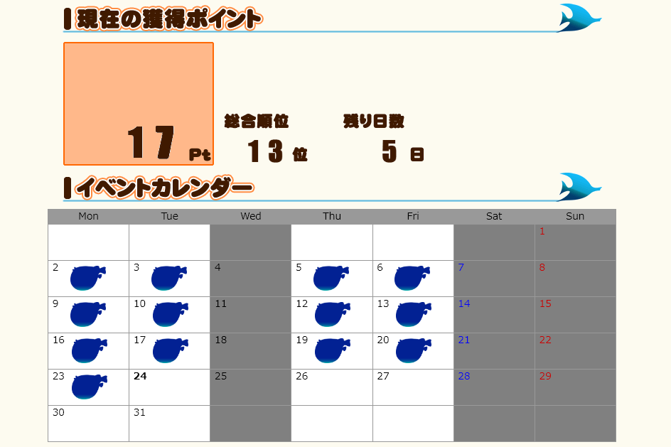 なんか終盤で17Ptで13位になってしまったw