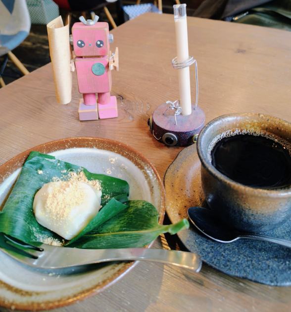 可愛いピンク色のロボ何?試験管にMILK?面白いお店ね♪
