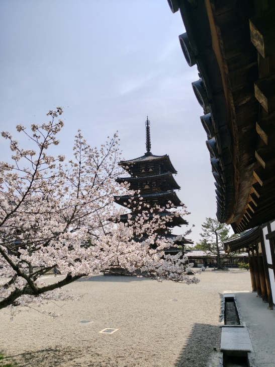 法隆寺 五重塔とさくらー