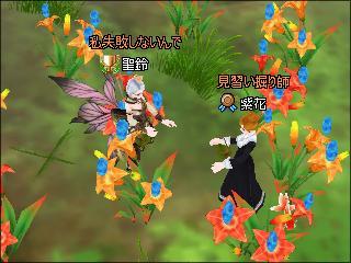 元ビギのすみれさんが、天空クエスト頑張ってます。フラワーバスケットを使うとこまで来たようで。僕が口頭で案内できない場所だったので、久しぶりに僕も一緒に花摘みしました。一緒にホリホリぃ(^^♪