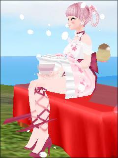 スカートは形状記憶でかつお茶碗が膝の上という・・・