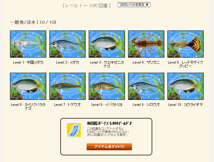 マイページの上の方で気になってみてみたら、魚図鑑なんていうコンプ欲をそそるようなものを発見
