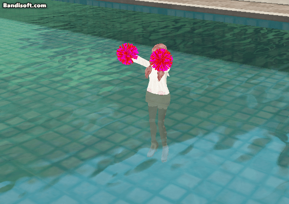 プールの中!今日の日替わりポンポンは赤!